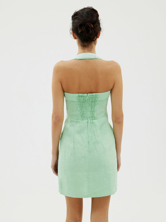 KATIE LINEN DRESS IN MATCHA