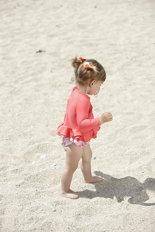 BABY GIRL'S ANTI-UV RUFFLED RASHGUARD CORAL