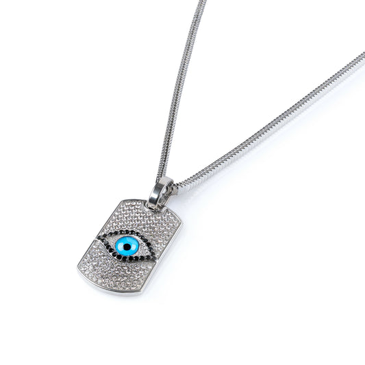 Square Silver Stainless Steel Chain with an Eye Pendant