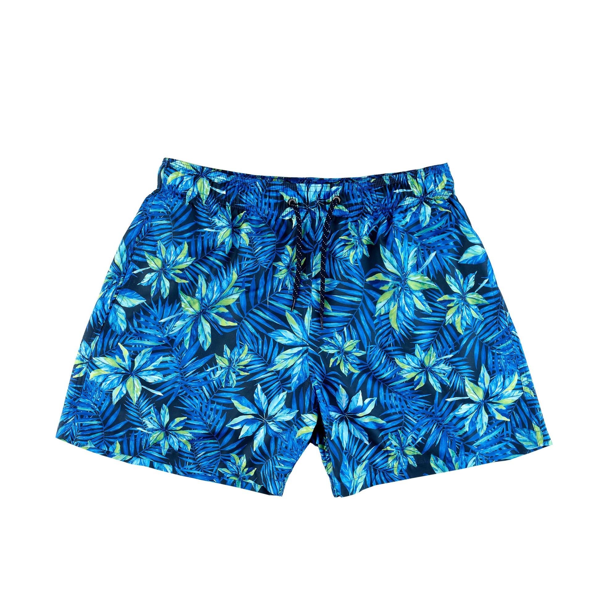 A pair of stylish men swimshorts from our Green leaves collection for days at the beach or by the pool. Featuring two side pockets, an elastic waistband with a drawstring tie and a further Velcro flap pocket at the back with a neon yellow detail. The internal mesh brief provides comfort and ease. A Father & Son perfect gift!