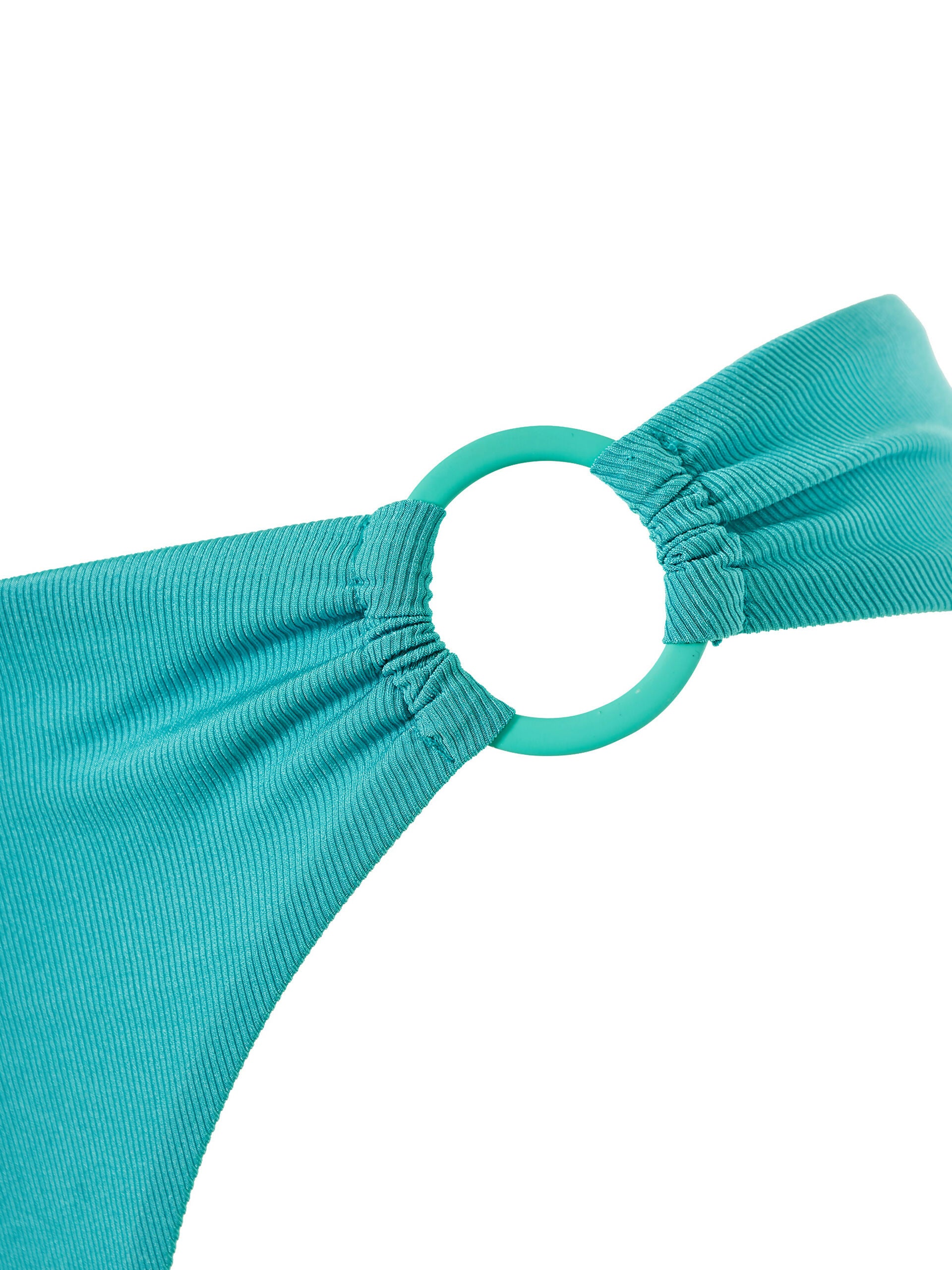 The Serena strapless bikini is cut from our signature, super soft ribbed fabric in a vibrant Aqua color. It features a tie-fastening on the back for adjusting the fit while the bottoms carry same-tone hardware on the side.